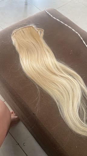 Os cabelos utilizados são de uma qualidade que eu nunca imaginei ser possível! Fios sedosos, brilhantes, que se mesclam perfeitamente aos seus, como se sempre tivessem estado ali. E o mais incrível: as extensões são manufaturadas pelo próprio studio! Isso garante uma personalização e um encaixe impecáveis, feitos com a maestria de quem realmente entende de cabelos. É arte pura!