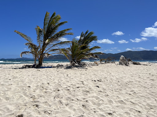 This place is your own little Gilligan's island. You can walk the whole way around the island on its Sandy beach. It just has coconut trees and palm fronds in the center. Whatever seads wash ashore.