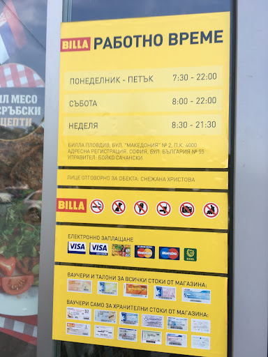 НЕ пазарувайте там - МАМЯТ! Пазарувам редовно в този магазин, никога не си гледам касовите бележки, но днес ми направи впечатлениe, че няма как да трябва да платя толкова. Отидох за определено нещо, на което тази седмица има билла акция (разликата е 5 лв) и при отиването ми напазарувах и други неща - 2, от които също в седмичната акция. С отиването ми на касата се усъмних и погледнах бележка - на никой от продуктите в акция нямаше корекция в цената. Поисках да говоря с управителя (говорих с него само за продукта, за който бях отишла специално за другите не, не ми се занимаваше да ходим из магазина и да доказвам права ли съм или не), той ми каза че е грешка на служителките и ми върнаха разликата. Ако беше за един продукт щях да кажа, че е грешка, но за няколко...., а най-вероятно лъжат редовни потребителите. Повече там няма да пазарувам.... Такова нещо никога не ми се е случвало в...