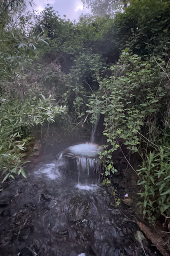 To get there you take a side path left of the dam, you walk for a minute and take right to a tiny and steep path below the trees. Go straight down, when you see the water under the dam start looking for the pipe.