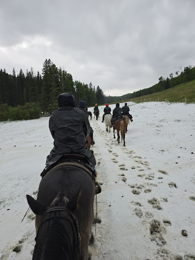 Our Wrangler Danielle, while she was very nice when she did talk to us, put so little effort into communicating with us and at times it made it feel so awkward. She mentioned we were running behind and wanted us to get the horses to move faster, but they were matching her pace and were just not enthusiastic about being on the trail so we ended up just going the same speed. Without saying a word to us our wrangler just veered off the trail and went down this steep hill and we were left confused as to what was going on. Of course we followed but all of us (including the 2 that had more experience with horses) felt so uneasy going off the trail and down a couple of steep hills without trails. Especially with zero communication from our wrangler. My horse didnât want to go and kept turning to go back up the hill but of course I had to make him follow. Eventually we ended up in a cow trail and unfortunately my horse didnât want to listen to me and ended up putting me under a sturdy tree branch and knocking me off of himâŠso I went home with some minor injuries. I was very confused as to how we could get âbehindâ on a trail ride when every trail ride Iâve ever been on has been one speedâŠwalking. I feel like as a business thatâs been around for so long and takes so many beginners they should have those trails timed and planned so accurately that ârunning behindâ should never be an issue. Nothing good ever happens when youâre in a rush. My accident was brushed off as no big deal, but Iâm certain it would not have happened if we hadnât gone off the trail. They said that it was normal for them to do that. Maybe so, but it still doesnât sit right with me. Iâm confident that the business owners probably deserve the positive reviews they received in the past because I was quite impressed with the briefing before we got on the trail and everyone was pleasant. But maybe theyâve let some things slide overtime which has resulted in us and others not having a great experience. The wranglers certainly could have tried harder to communicate better and be more personable while riding. The trails should be better thought out if timing is an issue. And safety on the trails should be a bit more of a concern as well as the quality of experience their guests are having. I was also super disappointed in the cleanliness of thingsâŠthe outhouse was atrocious and my saddle was duct taped together. And I get itâŠthings are expensive to replace and upgrade, and theyâre super busyâŠbut they could have a bit more dignity in how they present those things...especially the outhouse.