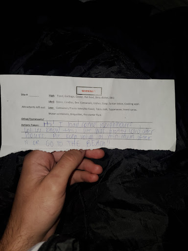 Read moreThe campground itself was nice and the bathrooms were honestly really good. Very disappointed by the staff however. Our first night we were pretty tired; didn't have a fire or hang out outside our tents at all. Instead we got ready for bed once we got to camp late that night and went to sleep just before 11pm. The next day we were away for the entire day and left a few belongings in our tent. We get back that night and I find the fly partially open on our tent with this passive aggressive note inside saying we caused a bunch of noise the night before when that wasn't the case at all (there was a noisy site a few sites over from us). I thought I'd show the staff on the way out incase one of their employees made a mistake. Turns out the lady I showed it to was the one who wrote it and she left these notes in multiple different tents; basically accusing all of us of being noisy "because she didn't know which site actually was loud." She was quite defensive about it and seemed to see no problem with touching our stuff and leaving the fly on our tent open. A couple minutes after I left, my wife was coming out of the washroom and overhead her laughing about us with the staff.
