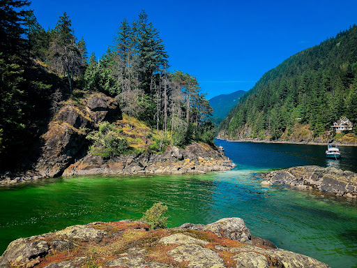 An hours paddle from Deep Cove by kayak. The dock on the east side makes for an easy launch and land regardless of the tide but you do need to bring your kayaks up and out of water/dock.
