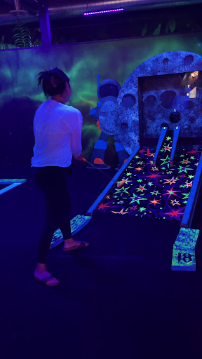 This venue is packed with activities - Laser Tag, Arcade games, mini golf, party "rooms"(no doors to the party area, just an area set up by barriers for a tiny bit of privacy), overpriced prizes for items bought at the dollarstore. Typical money bringing fun! My major concern is their choice in music for a bunch of tiny humans running around. I shouldn't feel like I'm at a club where I can't hear myself think over the DJ. Find a good 80s, 90s, 00s Playlist that is censored and have kids "shoot" each other to ACDC or the classic kungfoo fighting or Mortal Combat. It's not a club and there may be adults that come to play but you still don't need club music! The mini golf has been the same for as long as I can remember with no changes, additional obstacles or updates. You have people walking backwards through the levels while you're playing, impatiently waiting behind you and the music is so bloody loud that you can't hear yourself think anywhere in there to focus enough to take your shot. Food? Nope. Drinks? Nope. Washrooms? Yeah.
