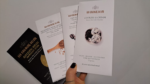 The ambiance of The Organic House is warmly inviting, with an elegant yet unpretentious décor that reflects the artisanal nature of the products. The shop's layout allows visitors to view parts of the chocolate-making process, providing an educational glimpse into the care and skill that goes into each batch of chocolate. This transparency in production is refreshing and enhances the overall experience by connecting consumers with the journey of their food from bean to bar.