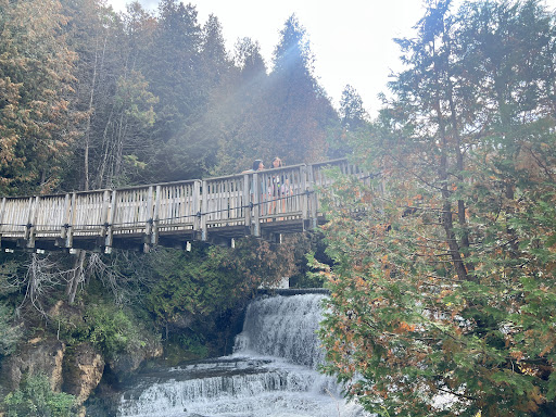It has a nice boardwalk that well engineered, i like the idea that it has fence so kids can be safely walk but not ideal for crawling as there are foot grip that meant to abstain people from sliding, plus so many stairs that unaccessible with stroller or wheelchair. There is, however, a spot by the entrance where it's wheelchair accessible and from there, you will be able to see the view of the water on the creek. The bridge is nice, not very wide but good enough to enjoy the scene. This place is a bit tight parking spot. It has a washroom on-site. There's also a trailer if you want a long walk. They have a water fountain, and some sort of shallow pool probably built centuries (no swimming). I like the cave at the bottom of the bridge, small but looking like a house from centuries called Yellowstone cave. It feels cool inside and well sheltered with trees, although a bit dark. This place is only good for spending 1-2hrs sightseeing as it mentioned on their post: No picnicking, BBQ,...