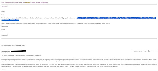 Read moreWent with some friends and since a few of them couldn't get tickets to the movie we were going to see they decided to wait in the arcade (where they bought close to $40 worth of game tokens) they were there about 15 minutes before being asked to leave because apparently youre not allowed to be in the arcade without movie tickets (they were allowed to enter the area no problems and there are NO signs to inform anyone of this rule, and my friends thought it was a bit suspicious that they were asked to leave only after my friend started holding hands with HER girlfriend. Sounds a little like discrimination to me). We live almost two hours from this location and do not visit it often, and when we asked about refunding the tokens that they said they couldn't do that and that they had to leave. I requested to speak with a manager or supervisor(who took close to 20 minutes to actually come speak with me) and asked her about this rule that no one with us had ever heard about before, she confirmed that it was indeed correct and that they shouldn't have been allowed passed the ticket purchasing area in the first place. I then asked if they could refund the tokens that my friends were unable to use (still over $35 worth of tokens) and she said that Cineplex didn't have the authority as the arcade machines were owned by a different company. I then asked if we could have contact information for that company, and she said there was ABSOLUTELY NO WAY she could provide that information, she suggested we save them for our next visit, then I informed her that we don't live anywhere near there, and as we were extremely disappointed with how our friends were treated, didnt really think we would be returning to that particular location anytime soon. And finally asked if there was ANYTHING she could do to make the experience any better for us, and we received a very adamant no. Id like to add that I was very patient and was not screaming or yelling or swearing or causing any kind of scene, we were all extremely patient and calm and just wanted to give them the opportunity to save our experience and the chance that we would give them return business. We were talked to quite rudely and the manager didn't seem to care that we were very disappointed with the experience, not to mention that the only people in the arcade that were asked to show their tickets was a couple of girls holding hands. They were treated rudely and it seems to me discriminated against because of their sexuality. My friends and I will never return to this location, and have urged other friends and family who live in the area not to give them business either. Disgusting and unprofessional, EXTREMELY DISAPPOINTED. If I could rate negative...