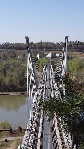 Amazing! I love to walk there again. At first we did not notice that there was a passage under the bridge because we were on the topview looking for the way going to the muttart conservatory 😅 until we went to the Chinese Garden. The pieces of art attached on the top were eye catching. The design of the bridge and where it was situated, were just perfect. People were biking around, walking and sitting on the bench. It's relaxing to sit on the bench overlooking the river and the city. I wonder how it looks...