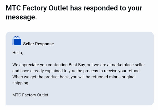 I called MTC asking if I could cancel the order since I hadnāt received the appliances yet. I was told they have a no refund policy even though on their website it clearly states that they accept returns within 7 days of purchase for store credit or exchange. I asked if there was someone else I could speak with ā I would like to state that I was calm and courteous throughout all of my interactions with all MTC employees āI was transferred to Francis who was immediately curt with me, no doubt expecting to speak with a Karen. I explained the situation and asked about a return. Francis told me that their no refund policy is explained āad nauseamā during the sale process. I said that I understood their policy but I thought Iād ask since this was an extenuating circumstance and the appliances hadnāt left their store. I explained that the delivery and installation fees were explained to me and I was fine with that. I then explained that I wasnāt told about the ā17 stepā policy of the delivery company. Francis responded with āyou said you were told about the extra feesā as if trying to catch me in a lie. I again clarified which fees I was made aware of and which fees I wasnāt. Francis told me that I would have received a pamphlet about the delivery company explaining everything at the point of sale. I told him I hadnāt. Again, it seemed as though he thought I was lying. I explained that I didnāt complete the purchase at the store, but online so that was probably why I didnāt get a pamphlet (I didnāt want it to seem like it was Lindsayās fault, she was great). Francis said that made sense why I didnāt get the pamphlet and reiterated that they have a no refund policy.