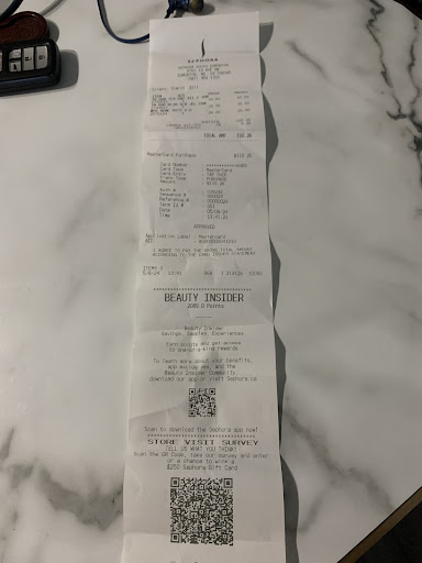 Ā Ā Ā Read moreVicky does an amazing job threading eyebrows! She has been my go to brow person for a few months now. She is very kind and knowledgeable and takes her time to make sure you're happy with her services. It would be a plus if the eyebrow area was in a more private space instead of the middle of the store but because Vicky is so quick and efficient the whole awkward side show experience is over quickly. The only downside, and it's not with any of the service providers or employees but the store/company makes the whole tipping/not tipping experience very uncomfortable for those on a tight budget. One time I went, there were no tip cards given to me when I was given the barcode card to take to the cash register to pay and nobody asked me to tip - it was the best ever. The next time, I was given the barcode card to pay for the threading at the cash register along with another card with tip options that I had to tell the person working the register what I wanted to tip, totally obligated to tip since it's rude to say no tip but at least the options where limited to a set amount ($1,$2, $3, I think but they double scan the dollar amount to equal whatever you want to tip however no tip is not an option). The most recent time I went no tip card was given to me and I hoped it would be like the first time I went, but again at the cash register I was asked how much I wanted to tip. It wasn't just shown to me on the credit card machine where I could quietly select my option but the person working the register asks you in front of the whole store full of other employees and customers how much you want to tip. Again, you are obligated to tip and to tip high because everyone is listening and watching you. The service is already costly and I work a minimum wage job without tips so I need to budget carefully for this. I am happy to pay what is required and what the service is worth but being forced into tipping ruins the quality service provided by the employees. I wish Sephora would just pay their employees fairly and not make customers tip, it makes for a very unpleasant experience. Or at the very least, have tipping be an option on the credit card screen instead of a publicly displayed conversation at the cash register for the entire store to witness and judge you on. (And yes, I have previously worked in the service industry...