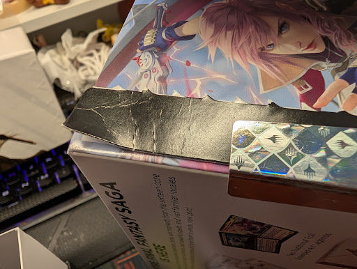 On top of all of that, I keep having a feeling the box was tempered with? The corner of the box was bent like someone tried to peel it back, and I didn't think much of it because to me it's seal still. But then I open the box from the side of the peeling and the poster inside is crammed into the other end, as if someone opened the box, looked in for whatever they were looking for and shoved it back in. One of the packages for the lands also has a cut down the center that cut the card which was odd??