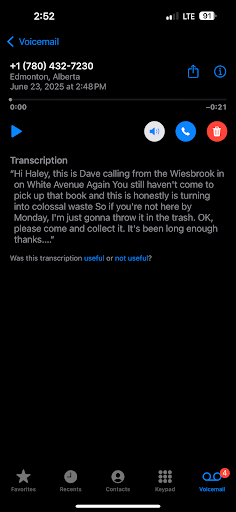 Fast forward to today I got a pretty nasty voice mail from the Manager, Dave stating that this is a “colossal waste of his time” and “if i don’t pick up the book it will be in the trash”.