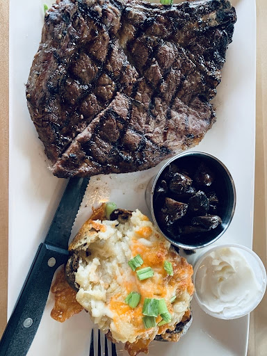Would not recommend! I work with the public and told people I was going here. When asked about my visit, I shared the truth! We booked a reservation for 4pm, asked for a seat with a view and marked it as a special occasion. Upon arriving 5-10 minutes ahead of time. As we went to head inside, the lady(cook) sitting outside with co-worker was abrupt telling us that they weren’t open yet! I said okay, we’ll just sit on the patio and let us know when we could come in. We sat and waited until another couple had arrived and walked inside, we followed. All the workers seemed to having a great time. We let a young lady know we had a reservation, she showed us to our seats near the bar (no view) I told her we had reserved a seat with a view. She showed us another table and seated us. The table was dirty from the day before! She apologized and brought some cleaner. We asked about a drink, she told us….i’m not your waitress. Then the best part of the entire visit was our waitress Tanya! The French onion soup was salty and had onion skins which wasn’t a pleasant experience. The steak was overcooked, tough, no flavour and dry. No seasoning on steak or mushrooms. The loaded potato was topped with wilted green onion, the mushrooms were black and shrivelled not looking fresh! The waitress insisted on making the plate right (I never send things back to the kitchen) and took both back to the kitchen. The next plates came out, the loaded potato had no onion, steak was cooked as requested but tough and fatty, mushrooms were the same and the worst part was it had hair on the plate, yes hair!!! Not at anytime did anyone mention the special occasion so not sure what the point is in asking on the reservation 🤔 pricey for the bland quality of food. I don’t see this place being successful. As you can see, plating is not consistent. A huge disappointment! Will not be recommending! P.S the executive chef advertised, is NOT...