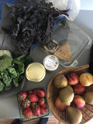 Greta conversation about herbs and weed with the guys from Branching Path Farm. The bread from Luscious Ds (country loaf) is a MUST.. best bread I've had in a while.
