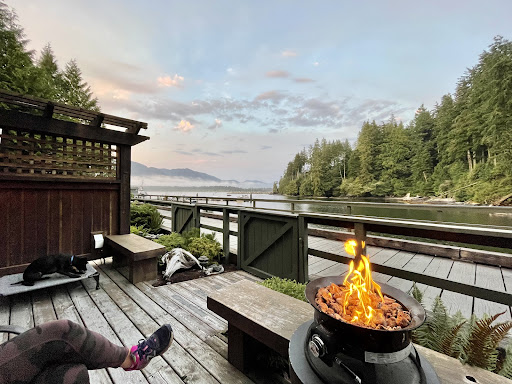 We had a wonderful time at our Wharf front cabin, we were aware that our front porch was on the wharf which is less private but absolutely gorgeous with propane firepit to enjoy once it gets dark. Our back door was situated right by the beach access just a little scramble down some rocks which we definitely made use of as we had our doggy with us. Though we had an amazing time and really enjoyed our stay a few things would have made it better; We read we would have a kitchenette and brought breakfast foods so we could manage our budget better and not eat out for every meal. There was no hot plate so we were not able to cook anything. We would have happily brought a camp stove, alas it should be more clear that no pans pots or hot plate is included. It does dtate that they wonât clean pans or cups without a $75 fee on the sink yet no pans in sight?? The price of the unit and the description had me thinking we would be able to cook. The fridge ended up freezing a lot of the food we brought and so it was wasted, be mindful not to use the top shelf for things that will be ruined after being frozen. We managed to cart all of our eggs back home :P So just to note better It is not a complete kitchenette, or just throw in a little hot plate and pan. Additionally if youâre going to list coffee bags we should have all the coffee we were missing one caffeinated back I would have liked to try.