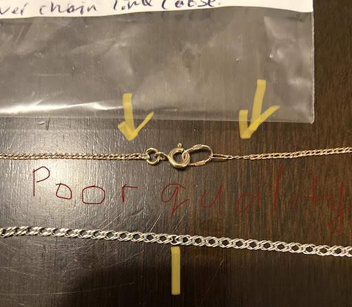 Read moreI’m quite disappointed with the quality of work they did. I had 2 chains to repair: silver and gold. Silver chain consists of double rings, one ring of one pair was broken. I expected it soldered, but instead they just took it out and charged 20$ for that. Gold chain had a broken lock and a hook. Gold that was used for the lock has significantly lower quality than the other parts of chain. Lock that was on the chain before the repair they kept for their advantage. Quality of soldering is really poor it is not a jewelry work at all. Chain rings on the other side of the lock are stretched without any reason. 50$ for the gold one. I will never go to that place again. I have a feeling that I was caught by quite experienced guys that can easily trick everyone with their “repair “ or they just can’t do this...