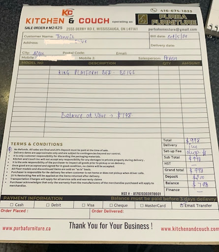 My cousin who is living in Montreal, went to Purba Furniture. The salesperson (SARAB) was very gentle when he went to get furniture from them. They selected the full king size bedroom set and sofa set with coffee table.