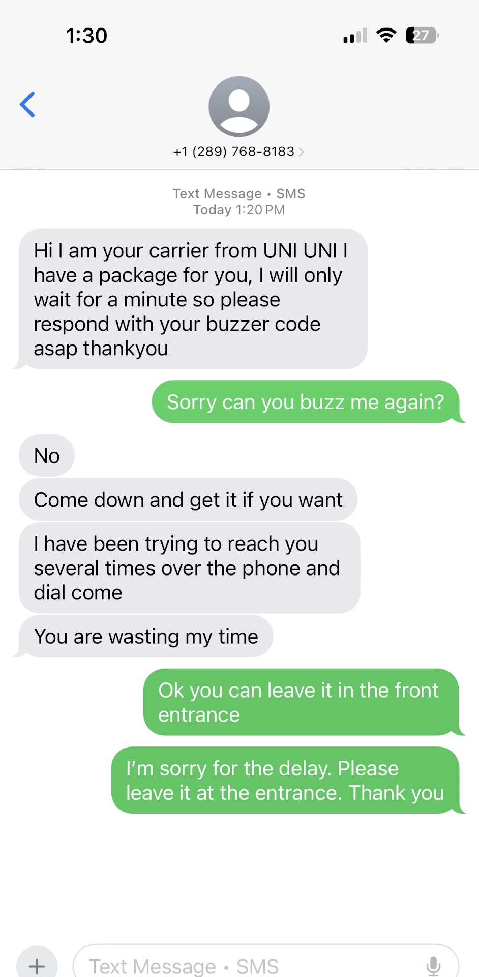 The package was delivered two days before the updated date that was 💯 verified multiple times. Yay. I just happened to be home. Lucky. And a neighbour just happened to be outside the building and guided the driver. Also lucky. So who knows. I am truly happy to see some positive reviews in the last couple of months. I wrote and called Uni while I was still waiting, and Shein, about working on these practices and that there does not need to be such frustration all around. So hopefully there are positive changes for everyone. Regardless I personally will do anything I can to have FedEx or DHL be the carrier.