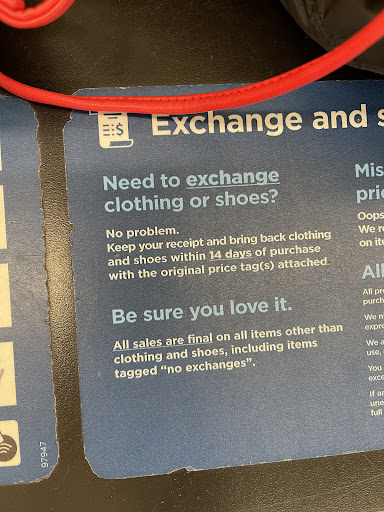 When I went in to return it today, receipt for $10.00 in hand, I was told all electroncics are final sale; even though my receipt did not say that. Further, the floor manager advised, the price sticker must still be on the item and it too says final sale. Once again, nowhere did it say that.
