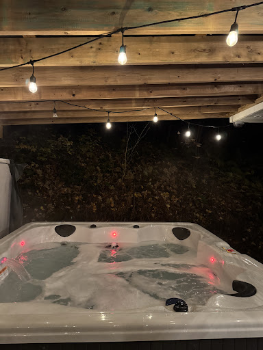 The cabin itself was amazing – cozy, well-equipped, and perfect for a getaway. The hot tub was an especially nice touch. It’s conveniently located just off the highway, with a charming little town nearby that has plenty of great food options.