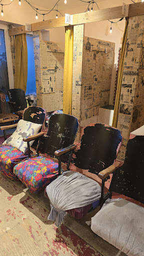 Upstairs there's a men's section, varies from plaid shirts/button ups, shoes, hat's,/caps, jackets, sweaters, and bottoms. There's a small nook by the window for eating and across the floor there's a couple couches and sofas to relax, play some games and eat.