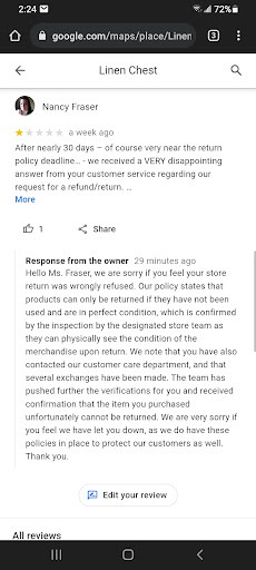 Read morePreface : I had terrible experience with the linen chest website and customer service head office (feel free to see my extensive review on linen chest head office on google maps).