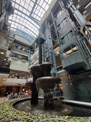 Place Montréal Trust is a prominent shopping centre located at the intersection of Sainte-Catherine Street and McGill College Avenue in downtown Montreal. Opened in 1988, it encompasses over 320,000 square feet of retail space and attracts approximately 14 million visitors annually. The mall is renowned for its architectural features, including a five-story atrium that allows for ample natural light and houses North America's tallest indoor water fountain, reaching 30 meters in height. During the holiday season, this fountain is transformed into a giant illuminated Christmas tree, enhancing the festive atmosphere.