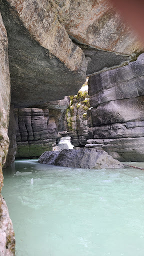 If you wish to view the Canyon and falls during the winter, you can either join a tour or attempt the ice walk on your own. Ice cleats are highly advisable as the trails become quite packed down and you will also be travelling on the frozen river for part of your excursion. if you join a guided tour these will be provided for you. Otherwise you can rent them at Jasper Source for Sports, Gravity Gear or Pure Outdoors. Wear your snow pants for the opportunity to slide down down the natural ice slides...