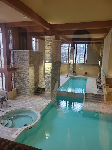 Last week I hooked massages for my family. My wife and 7 and 11 year old. I mentioned my kids kids on the phone and referred to my son as little guy. My kids are okay to get massages in our home town. 5 Lakes has a policy.... Nobody below 15 or 16 years of age. Just FYI. Unfortunately we found out about this upon arrival yesterday. Our kids stayed in the hotel lobby and chilled. The communal waiting room is a bit awkward but there is tea and water. I guess it could be an opportunity to be social if you are feeling that way. When we arrived at the waiting room or lounge there were 4 women fully clothed and all of the chairs were spoken for. They left after my jokingly asked them where their robes were. Just a suggestion to the 5 Lakes management.....the waiting area can be awkward. Especially if people aren't wearing underwear under their robes and people in attendance aren't feeling like hanging out with strangers. We came much too early and next time we might arrive just before massage time. Changing in the massage room could and should be an option. Okay. Onto the good stuff. The hotel is awesome. The spa is great. Smells amazing. Front end staff could be a bit more friendly and clear on some things but mostly professional. My therapist. Rileigh. Friendly. Professional. Rileigh had a great gauge on pressure and also on if I wanted to talk or not. I stayed silent for about the first 30 minutes then we chatted for the rest. Her technique was pleasantly flowing with no pauses. I was warm and comfortable the entire massage. I requested a longer concentration of time on my feet and she delivered. Conversation was pleasant with no awkward pauses or weird conversation like I've had with other therapists at other spas. I am giving this review a 5 out of 5. The 5 out 5 is for Rileigh. The spa gets a 4.4 out of 5. My kids really wanted a massage and it didn't happen because of this age policy. I looked online. I could not find. Doesn't mean it's not there. I just couldn't find it and it was not mentioned once on the phone whole booking massages for my KIDS. The first question Marissa asked was how old everybody is. Clearly my son who is 7 and 11 year daughter are not 15 or 16. It was awkward and didn't need to be. We are okay with change. One other thing. My benefits provider sets a limit for a one hour massage at 100 dollars. The menu does not mention that their prices DO NOT include TAXES. It should. If it does..... again..... I could not find it. All the places I've been to has the prices with the taxes included.