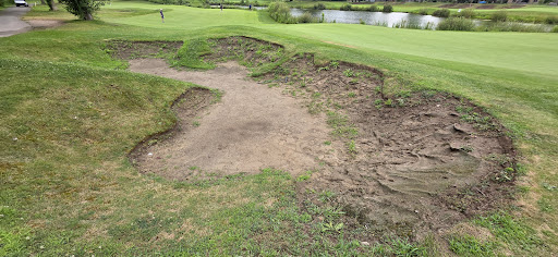 Anyone who works on the grounds crew at this course should be utterly ashamed of themselves. Mangled teeboxes, dry, sandy greens, and the bunkers...MY GOD, THE BUNKERS!. Just see my attached photos for a few examples of what this place considers passable for sand traps. On one hole we saw two kids raking a trap, which we thought might be a promising sign. But they did half of the one trap and left...completely ignoring the other 4 traps around the green.