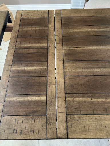 Fast forward a couple of weeks, the delivery guys arrive to set up and install for an additional fee. My father in law was there to let them in. Ok so first off, at the store they said the delivery/install team would be able to move one piece of furniture to the basement for us. Well that didn't happen. When we asked them to move it, they got upset, started swearing, acting so unprofessional we actually had to ask them to leave. It was that bad. So they left and we had no table. Called customer service.They apologized and set up a new delivery date a week or so after that.They sent a new team to come and install.It was some young guys, they had no instructions and slapped it together and left. When my father in law got home we noticed the table was so wobbly we had to take it apart because we have a young child in the house it was dangerous. Upon further inspections , the table was scratched, missing pieces, and the chairs weren't even upholstered properly. Now the fun begins. We call customer service and explain to them the situation. They say we have to send email with pictures, they will send someone out to inspect In a couple of weeks to see what they can fix on the spot and what they will send to replace. So this is my thoughts during this time - can't you just send us a whole new set?! We paid top price, this isn't second hand Sally's here, we went to Ashley's which is supposed to be top stuff. Back to the customer service. I kid you not, myself, my husband, my father in law, my mother in law probably called them 50 times to explain, re explain , beg, plead, whatever we could to get them to just send us a new set. We were patient, we understand these things happen....but it felt like we were getting cheated, like they wanted to make it tough so we gave up. My husband eventually went to the store to talk to the store manager. He explained that they would make this right, unfortunately they can't control what happens once the sale is done but they got him in contact with his boss to try and get something moving. They said they would get someone out asap. So that didn't happen, NO ONE SHOWED. So I go to the store, and ask to speak to the manager. Now I know there are two, I can't remember his name, but let me tell ya, I knew because I was a woman I was bring treated differently. He sits me down, and asks me in the most condescending tone " your husband was happy....are you SURE understand the whole situation? Are you SURE you understand what your husband told you?" So I tell him to just get me on the phone with the boss my husband spoke to. And he tells me " he doesn't have time to repeat himself over and over " My jaw dropped. Like , does it matter if you have to repeat yourself?!? Clearly I didn't "understand" so explain to me what was said and promised ?!? He said ok and brought me over to the front desk and then just disappeared in the back never to be seen again?!?! Lol. So the front desk lady, who was really nice, looked at me and said "ummm how can I help?" I think I wanted to cry at this moment. So I re explained the whole situation. I said all I want is a brand new set , that's it, just replace the damaged set. So she got on the phone , talked to the manufacturer , they said no problem they would sent it in a couple of weeks. They show up, with only the table. We call customer service and they said the note was only to change the table. I re forward the emails with the pictures of the chairs and The girl admitted that the staff doesn't always take the best notes and this has happened before. Eventually the chairs get fixed. After three months of this they said they would give us a gift card for our troubles...we have never seen it.