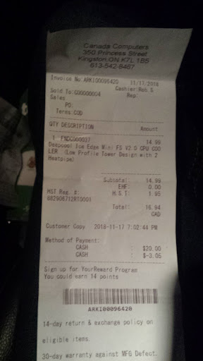 Only store in Kingston where you can drop $2000 and they will still charge you for a bag. Jokes aside, they’re inventory is great, reasonable prices, and for the most part, pretty good helpful staff. The reason I say for the most part that some of the staff can be very rude and disgruntled when you ask something of them. On one occasion I wanted to buy a mouse that was currently not on display, but in stock. An employee from the basement had to come upstairs to retrieve the mouse from their inventory which he seemed very irritated and reluctant to do. When he found the mouse he handed to me without even acknowledging me to which i thanked him and received a sigh and eyeroll in return. On another occasion I went in to upgrade my PC. I was looking at the variety of GPUS they offer when an employee working behind the desk asked if i needed help with anything, I responded stating that I was looking to upgrade my PC but i haven’t decided on what yet. The employee said nothing in response. Now I'm no expert in sales. But the customer service part of my brain would see that as an opportunity to ask the customer (me) questions like what specs are they are currently running, what their budget is, if they've done any research on potential parts they wanna buy, really just anything to help someone who’s unsure find something they will be happy with. I still found parts I liked without the employees help and promptly made a $2000 purchase. As i was leaving i looked around the store thanked everyone and told them to have a great day. What did i get in return?? Complete silence from all the employees behind the counter. I don't know if the people working here just lack social skills or they genuinely hate having to stop doing whatever it is they’re doing in the basement to actually help their customers but when i go to a place where spending large amounts of money is guaranteed, I atleast expect basic human manners. Also if you dont know exactly what you are talking about some of the employees seem to develop a superiority complex and talk to customers very condescendingly. I dont know his name, but there is a younger, shorter haired guy who can often be found in the back section of the store who is extremely polite and helpful. He helped me choose which parts would best fit my current setup and explained to me stuff i didnt know and helped me understand crucial things. If you plan on coming here and have no prior knowledge on computers then I would highly suggest...