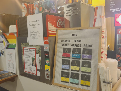 Lots of beverage options at the front as well, including local breweries, hot beverages served in mugs, and your classic pop.