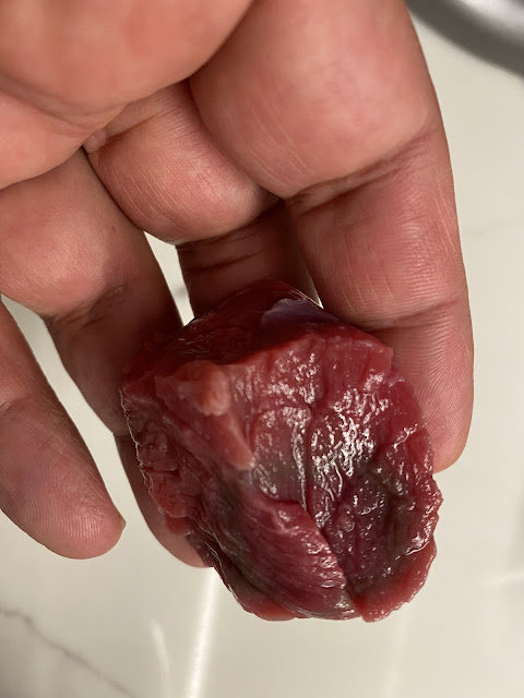 Bought lean beef cubes here on Saturday. Asked how fresh the meat is. Butcher stated it was delivered that same day. As you can see from the pics, beef is discoloured. Definitely not fresh or number of other reasons why this happened: Oxidation,When beef is exposed to air, the iron in the muscle tissue reacts with oxygen and causes discoloration. Age, Fresh beef should be a bright red color. If it's been sitting in the refrigerator for a few days, it can start to turn brown. Poor storage,Incorrect temperature or improper packaging can cause beef to discolor. Decaying meat,If the meat has started to decay, it will also turn brown. If it has a strong odor or slimy texture, it should...