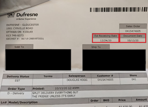 January 28, 2021 - I have been in contact with the Store Manager and Dufresne have provided me with an appropriate solution for the refrigerator. We are happy to have our appliances in the kitchen. No further issues with anything we have received yet. The couch is scheduled for delivery...
