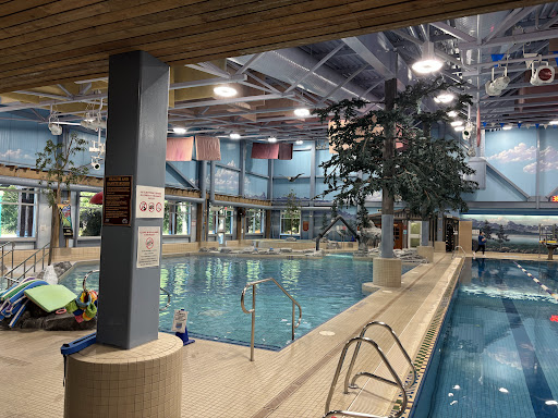 Ā Ā Ā Read moreThe lady at the front desk was very kind. We had to wait five minutes to even pay to get into the pool due to it being so full. Once some people left, the life guards sent a message it was safe to enter. You have to pay for a locker as they do not have any that you can use your own lock. That being said, it isn't that expensive to swim there. There is a larger pool that is very warm that is more shallow with a lazy river at the end. There is a second pool with lanes. In the second pool, there is a diving board and a climbing wall that are always open. There is a slide. If it is busy, it is rather slow because it is not manned and you aren't even allowed to go up the stairs until someone comes off completely at the bottom. There is two steam rooms. There is both genders change rooms and family rooms. Each family room is separate and that's nice if...