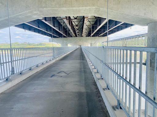 Read moreThe Gordie Howe bridge is a nice bridge to cross for pedestrian traffic and cyclists. It is not the widest but their is enough space for single file traffic when people are crossing at the same time in opposite directions at the same time. It is also the least trafficked bridge by pedestrians do to it being the furthest south bridge in Saskatoon , but it makes it a peaceful and quiet spot even though there is a little bit of traffic noise above. On one side of the bridge it connects to the south east trail link of the Meewasin Trail and a trail that takes you behind HolidayPark golf course and not too far from Gordie Howe Bowl. On the other side of the bridges it connects to Gabriel Dumont Park and Diefenbaker Park. This is a great place to come walk , bike or more. I have crossed the bridge many times...