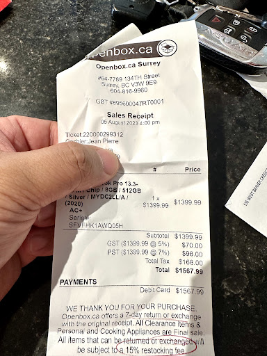 Ā Ā Ā Read moreI ordered a "Re-furbished" Mac Book M4 Pro and it was almost $700 cheaper than new. The description said "condition GOOD". I don't know what that means but the only thing wrong with this beautiful computer was that the Apple box it came in was slightly crushed on two ends. Other than that it is in perfect condition, no damage, and in new condition, really! It came faster than Amazon can deliver and they sent it via Canada Post. I got it literally 24 hours after ordering it and I live on Vancouver Island. I definitely recommend this place and their online store and in the future I will be using them every time I need anything new! I spoke with two employees and they were both great. They called me back multiple times to help me get what I wanted. I am sorry I don't remember the employee's name that works on SW Marine Drive but he was great and so was JP at the Surrey location which is where the computer was shipped from. I asked JP if he could send it asap and wow, it arrived in 24 hours! Great job JP! I will order all my electronics from you or SW Marine Drive in the future. Now it's time to get to know my new rocket fast M4...