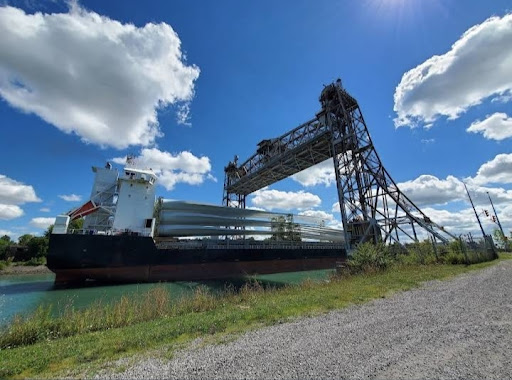 Lift bridges are beautiful. A classic method for solving the problem of sharing a space between a waterway and a roadway when there is a need for heavy transport. A hundred years ago, they didn't have the technology or materials for bascule drawbridges to support heavy vehicles so the "lift bridge" was designed.