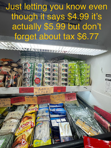 Read moreI was very disappointed tonight. I went there to purchase two bags of seaweed which in each bag has 10 seaweed packs. The prices definitely have gone up but not what I was upset about. They listed the prices on each bag as $4.99 and the signage on the wall also said $4.99. This kind of product they usually donât tax on and if they did it wouldnât be that much more.