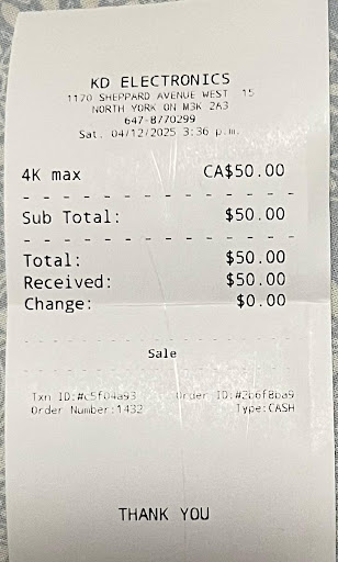 Read moreThey have No Refund policy. Be super careful before buying. I went here after seeing their advt on FB marketplace. Incorrect description and price- Fire tv stick 4k HD with box was available for $50, but when checked in the store, they said it was for $55 and now sold out. They didn't update the ad. Unwritten Warranty - i had to settle for a without-box device for $50. The device and other accessories looked brand new, just without a box so i bought it. For a cash payment, they gave a receipt. They said that device has 3 months warranty but it was not written anywhere on the receipt. Defective device- when checked at home, I found that the device was defective. Tried troubleshooting steps and also checked with neighbors, but it didn't work at all. Prompt response- I pinged the admin of their whatsapp group about the defect and promptly responded that they will provide exchange it. Offered a used device in exchange - when went to the store next day, they offered another device but it looked like used. The charger had lot of scratches. Plastic cover was missing. Anyway I was getting a device from a friend so I didn't want that one at all so I requested to refund which they denied. Charged 20% while refunding - when I insisted, I was told to get a coupon of $50. That coupon is not useful to me as I had no other item to buy in near future. Also I got suspicious about the quality of the products. So I requested for cash and they charged me 20% for that. Got a refund of $40.
