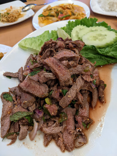 Ā Ā Ā Read moreIt was my 1st time my husband and I came here. The restaurant secluded in a quiet area. Predictably, we were they only customers when we arrived, which made me suspicious about their food :)). But eventually, people came in. We order Panang curry, Nam Khao, and Chicken/Shrimp Pad SaEw. Overall, their taste were fine. Panang Curry: Although the beef was cooked just right, the broth was lacking in savory richness. Nam Khao: nice dish with crispy coconut rice and sour pork. If you are a hot chiliphile like me, you're going to enjoy their roasted pepper. But be careful, you might choke because of the chili power inside. Pad See Ew: was surprisingly tasty. I don't know how they make their noodle so rich and chewy. On top of that, the dish had its wok hay. Highly recommended. Coconut milk shake was a big minus for the whole meal. The only smell that I had was milk, barely scene any coconuts. Service is so so, the staff were kind of...