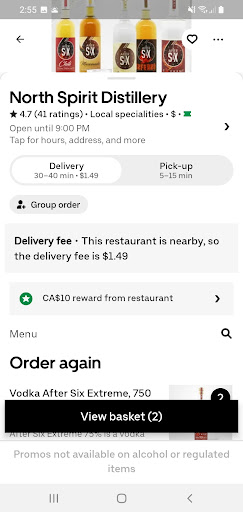 Ok, I'll move on....1 star for customer service only becaue I vant give you 0 or -53 which which how much money you owe me. I'll update this if and when you guys reimburse me the 3-10 dollar vouchers and 23 dollar voucher, which are all still valid until mid Jaurary, but not accepted because Uber doesn't allow this on alcohol. I asked for you non alcoholic item list....still no reply.