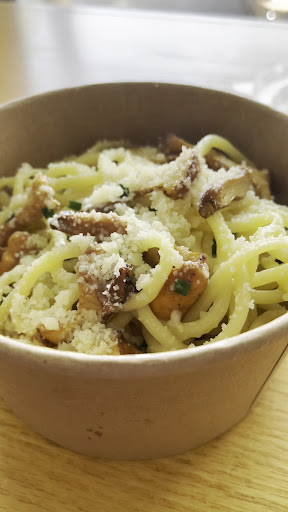 Read moreAs a pasta lover, I was really excited to try this place. They sell fresh pasta made in house, as well as prepared foods (fresh and frozen) and a cooked pasta special of the week. Bucatini and Chanterelles spoke to my heart (and belly) that day so I ordered one to go. It’s made to order and the aroma from the kitchen of melted butter and chives definitely smelled delicious. For $18, the portion was perfect for one. The pasta had a nice consistency, a little bit chewy and al dente. It looked amazing on the surface. However, the sauce/taste was on the bland side. I wish it was way more wet, as most of the sauce/seasoning did not even touch the bucatini (under that top layer) so it stuck together and was quite dry. My walk home was only 5 mins so that should not have affected the quality. Luckily I had some accoutrements at home to jazz it up. Maybe it would have been better had I eaten it on the spot, but I highly doubt it. Better...