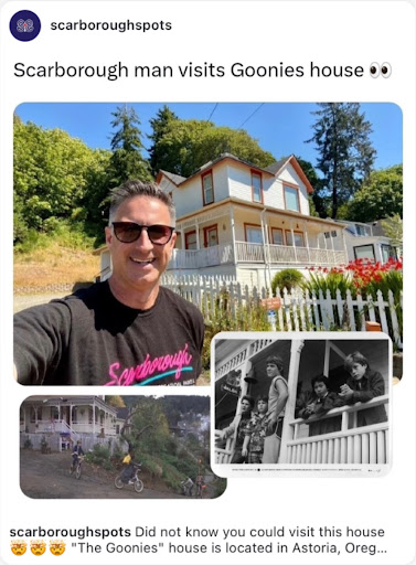 I had the chance to visit the iconic Goonies house in Astoria, Oregon this past summer, and to my surprise, Scarborough Spots gave me a shoutout! That meant the world to me. Repping Scarborough on the West Coast with one of their shirts reminded me just how deep the pride runs.