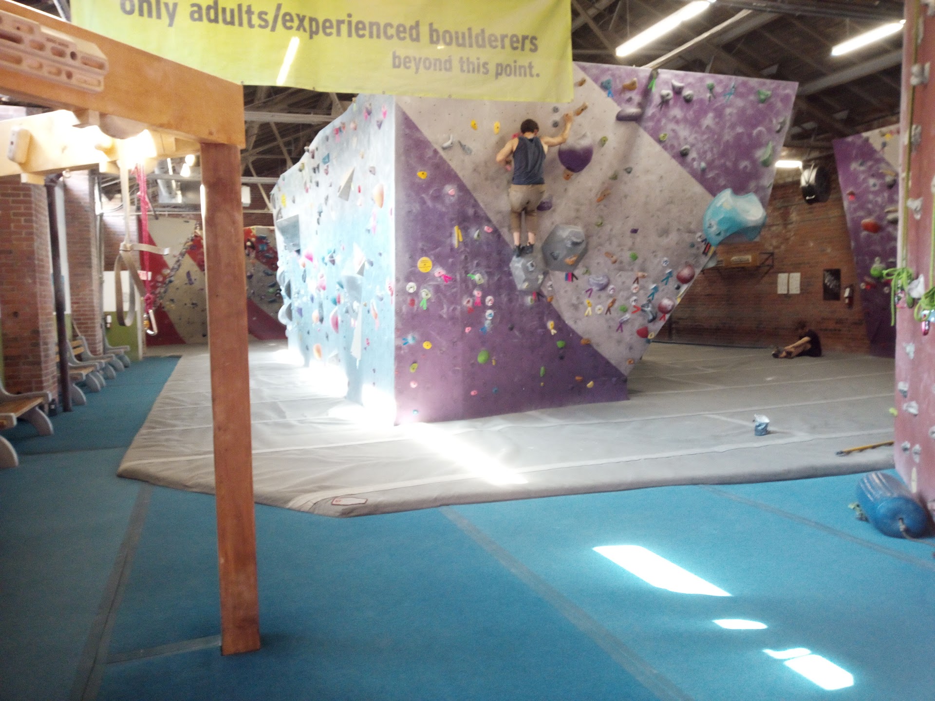To start off I would like to say that I respect the gym for its early start toward pioneering the Toronto climbing community. However old it has remained (maybe that's part of the aesthetic?), the facility is sub par with limited windows, upon leaving it feels like coming out of a Vegas casino. The building smells like paint when arriving and inside the gym is quite dusty. The climbing walls are merely adequate compared to those of other gyms who have started to switch to walltopia or more modern walls. The climbing pads are firm and can take a large fall which is nice, washrooms are well kept and clean, and the gym is also putting a good effort toward environmentally friendly options such as composting. There is a nice community vibe and there are regulars to talk to along with local climbing info boards. The gym often seems overstaffed with teenagers which seems odd for a climbing gym, when they aren't overstaffed the workers feel unapproachable due to their interest in talking with one another, however this is not the case for all staff. Climbing after work hours you will often find the gym crowded with other people but mostly a day camp of some sort, this is quite frustrating due to the smallish bouldering area. The gym has tons of available space but is not effectively used. There are too many belay course walls taking up an entire length of the gym and I still have yet to see one being used. There is a 'kids area' which is the size of a small gym on its own, I have noticed birthday parties are the main reason for the area, the 'kids area' can be turned into another bouldering section with a small area for the birthday parties which would be yet another great business opportunity. In terms of climbing, the bouldering is decent, the walls can get crowded with mostly v1-v2's. The ratings are a bit higher than most gyms which fit more with outdoor climbing which is good. The holds seem old and worn out, but they work with what is given. The routes are graded very accurately for the most part, and I haven't seen any routes harder than a 5.12c so if your looking for harder routes this would not be the right place for you. The walls are short and leading can get frightening on some of the vertical walls because of the spaced out draws, and the walls themselves are very short so if you aren't the most careful belayer decking can easily become a possibility. I would rate higher but I feel the drawbacks have a large impact on the...