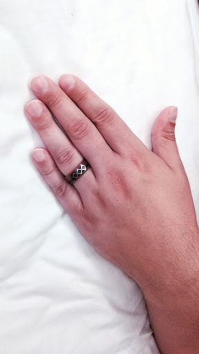 One other thing to note is that within a week of wearing the ring, my fiance started noticing some imperfections in the acrylic finish of the ring. We're not entirely sure what it is or if it will go away with time, but we do notice that the wood wax provided helps temporarily. I emailed Northwood Rings to ask if this needed to be refinished or if this was normal but wasn't really given a clear answer-- just that if I wanted to, I could pay for it to be shipped back to them to be refinished. For now, my fiance and I have decided to just keep waxing the ring regularly to see if the problem goes away.