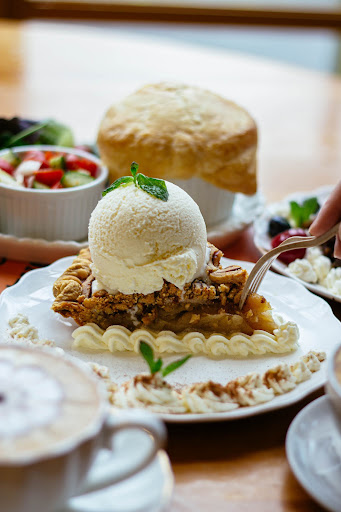 Cinnamon Roll Apple Pie: classic apple pie, and I have to highlight that their crust is absolutely amazing (for all their pies). It's very thick and buttery, with a very nice light crumbly/flaky texture. Strong apple and cinnamon taste. Also topped with a generous scoop of vanilla ice cream.