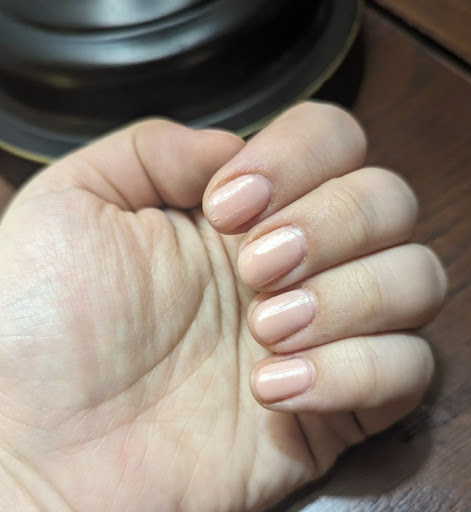 As I wasn't expecting that I would have to do a simpler design, I asked for suggestions where the technician shrugged her shoulders and said it is up to me and rushed me to choose the nail colours. I told her I wanted the same nail colours as the reference photo - while working on one of my hand (cuticle care), she gave me a basket of nail colours to look through. I felt extremely rushed and it was uncomfortable trying to pick the colours with one hand. In the end, I opted not to do any nail art as I literally did not have time to choose a new design nor any help from the technician.