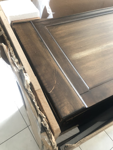 After opening the products in my doorway I noticed that the 5 drawer chest was damaged with a couple big cracks, splits in the back and a footprint. I immediately started to call Ashley Customer Service to have the driver returned for the damaged product. I had waited 15 minutes to be connected to a virtual call with Richard, their virtual technician. Richard explained they were having technical difficulties that day, which may explain why we were disconnected and I had to go through the whole process again. Pictures of the damaged furniture were sent and I was told that someone would be in contact with me the next day.